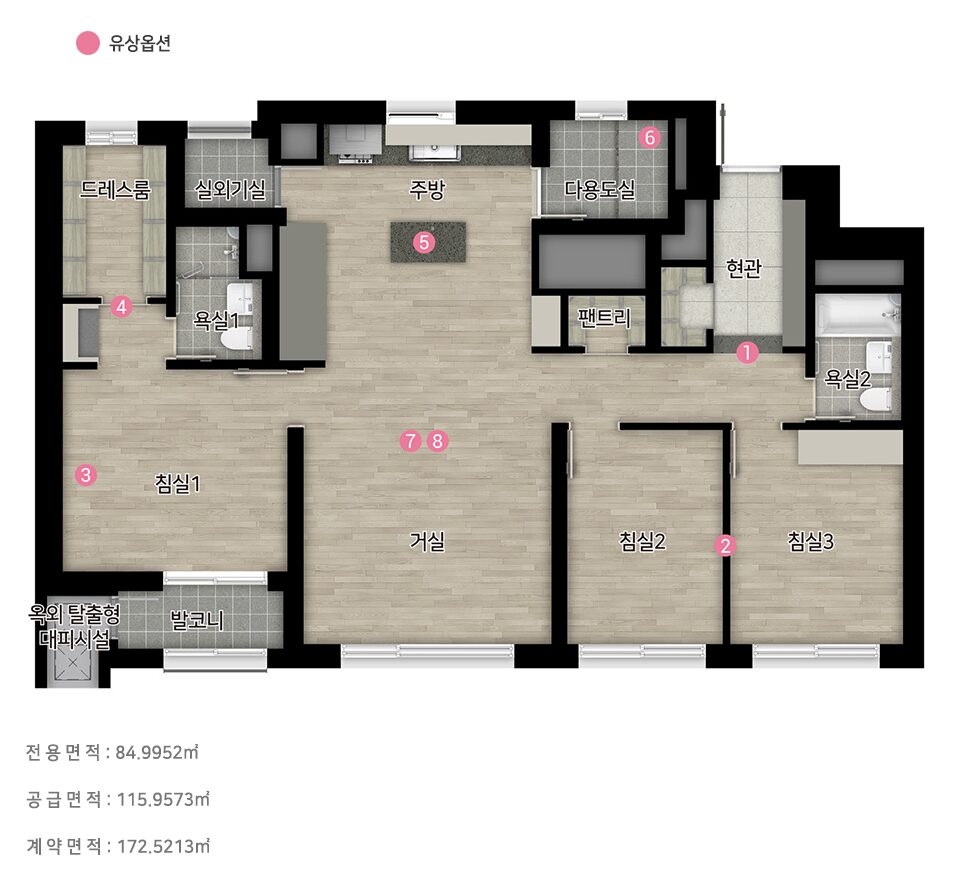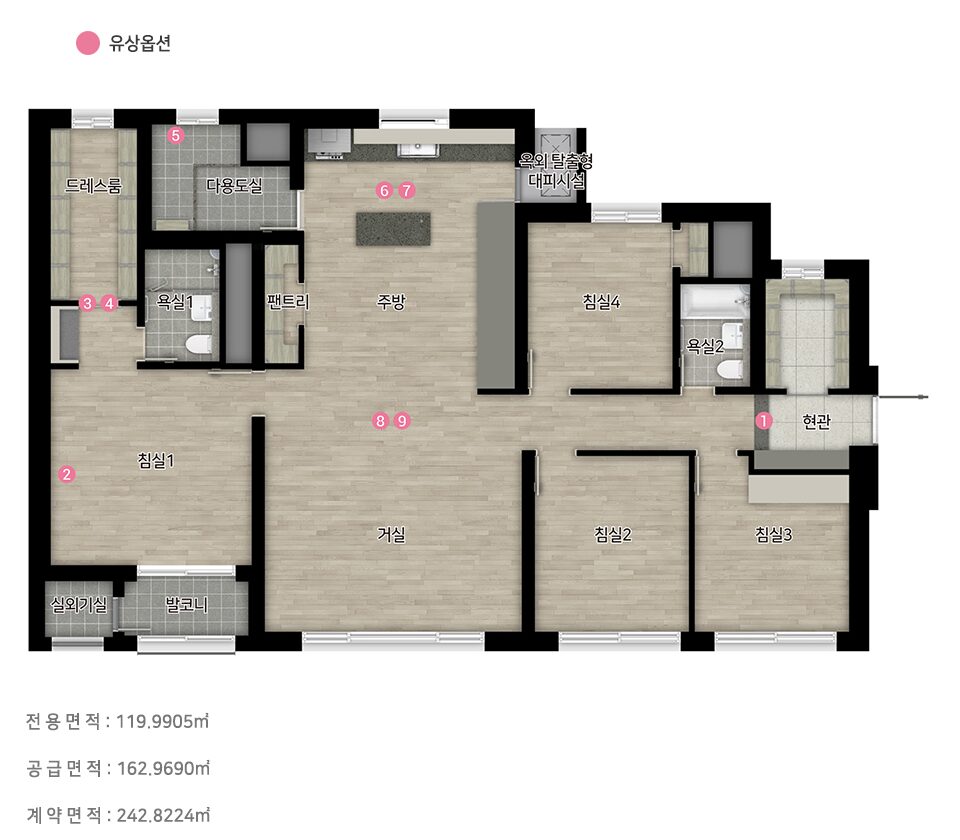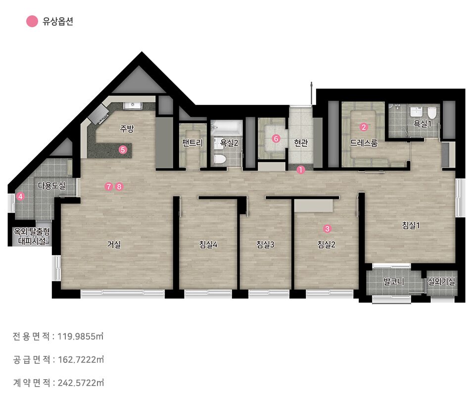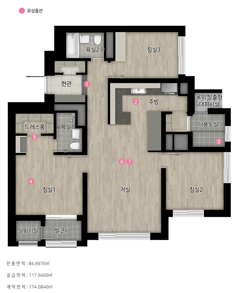 아파트는 전용면적 84㎡, 119㎡, 174㎡로 구성되어 가족 단위 실수요자부터 넓은 공간을 선호하는 수요까지 고려한 평면 설계를 적용했으며, 오피스텔은 전용 84㎡ 타입으로 실거주와 투자 수요 모두를 충족할 수 있도록 계획되었습니다. 지하 4층~지상 48층 규모의 고층 설계를 통해 대명동 일대에서 랜드마크급 스케일을 갖춘 단지로 평가받고 있습니다.